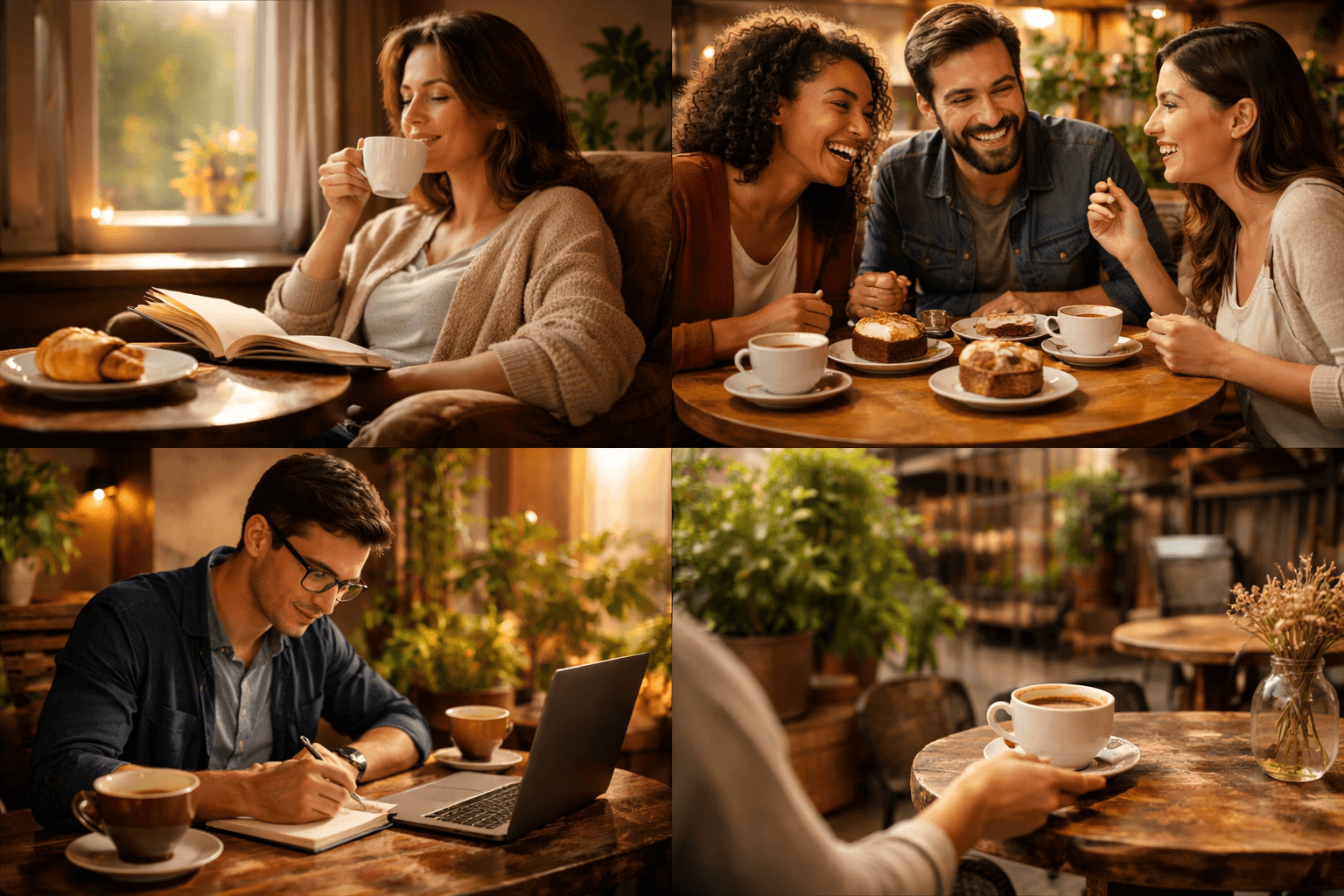 Risas, conversaciones y una mesa llena de café y postres. La cafetería se convierte en el lugar perfecto para reconectar con amigos y crear recuerdos especiales.
